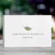 Convide seus convidados de casamento para compartilhar seus desejos e sabedoria com este livro de convidados moderno, apresentando uma folha verde empoeirada minimalista. Seus nomes e a data do casamento aparecem abaixo em letras clássicas de serif. O livro reverte para uma cor consistente. Para ver os temas de casamento mais minimalistas, visite www.zazzle.com/dotellabelle