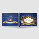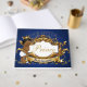 Livro Convidado do Príncipe Real Africano com um adorável príncipe étnico vestindo fraldas brancas, chinelos e coroa de ouro em uma elegante fronteira ouro com um fundo azul real. ©Miss Sassy Designs