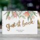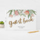 Casamento elegante ou livro de hóspedes de noivado com letras de brilho dourado.