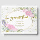 Capturar a essência da primavera com um livro de convidados de casamento maravilhosamente desenhado, com flores silvestres de cor aquática delicadas e caligrafia requintada. Essa preservação de temas pastéis será apreciada por anos, pois serve tanto como um guia único como um lembrete artístico do seu dia especial.