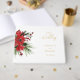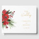 Este clássico livro clássico de convidados de Natal apresenta um pano de fundo branco limpo e brilhante com letras simples, minimalistas em preto e ouro e sotaques caligráficos manuscritos. Os embelezamentos de belas e clássicas verdinhas verdes e vermelhas de Natal com delicadas características de ouro criam uma estética perfeita de férias de inverno enquanto mantêm uma elegância polida para o seu casamento de Natal ou outro evento especial. Como com todos os nossos designs, se tem alguma pergunta sobre o design ou gostaria de algo especialmente feito para coordenar com o seu casamento, por favor, pergunte.