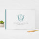 Convide seus convidados de casamento para compartilhar seus desejos e sabedoria com este livro de convidados de praia, apresentando uma crista monograma em azul-turquesa. Seus nomes e data de casamento aparecem embaixo da cinza de carvão clássico. O livro reverte para uma cor consistente. Para ver mais temas de casamento visite www.zazzle.com/dotellabelle Arte e design por Victoria Grigaliunas