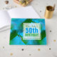 Abstrato (aqua, turquesa, quadrados transparentes de cor verde) com uma etiqueta quadrada branca semitransparente (pequena fronteira transparente) para nome, data e aniversário. Tudo é personalizável para este livro de convidados de 50 anos (cobrir de duro). Disponível em notebook espiral. Não se esqueçam da coleção completa de livros de abstrato.