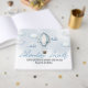 Celebre a chegada iminente do seu pequeno com este Livro de Convidados do Chá de fraldas Balão de Ar Quente Azul. Apresentando um charmoso balão azul de ar quente flutuando entre as nuvens fluffy contra um fundo azul-claro suave, esta design cria uma saquê sonhadora e elevadora. Perfeito para o chá de fraldas de um menino, este livro de hóspedes é ideal para capturar mensagens e memórias sinceras do seu dia especial. BBS317