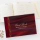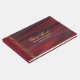Elegante burgundy colorido livro de hóspedes feito em um olhar de cetim, com gráficos de joias de tom dourado encrustadas. Personalize o texto personalizado, na frente do livro, para o seu dia especial.