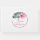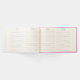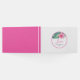 Este livro de convidados personalizado apresenta uma flor de hibisco e folhas de palma de monstera em tons de rosa e verde vibrantes. A palavra "Amor" é definida na tipografia elegante da escrita. Use os campos de modelo para marcar seus nomes personalizados e a data do casamento. Visite www.zazzle.com/dotellabelle para ver o tema completo do casamento floral. Arte e design de aquarela únicas de Victoria Grigaliunas do Do Tell A Belle