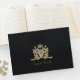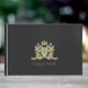 O Family Crest Guest Book é totalmente personalizável e pode ser usado para casamentos, aposentadoria, grande abertura, evento corporativo ou para qualquer outra ocasião. Projetado por Norman Reutter.