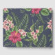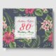 Design de padrão uniforme clássico e elegante feito de flores e folhas de Hibiscus vermelhas em fundo escuro com 4 tags quadradas semitransparentes para seus textos. Livro de convidado de festa de aniversário 80 personalizável. Você pode facilmente alterar o texto (fonte, cor, tamanho e posição), alterar a transparência das marcas (copiar ou excluir uma delas) e alterar o tamanho e a posição da imagem de fundo clicando no botão personalizar ou personalizável. Chapas de papel, guardanapo de papel, etiqueta de presente e outros produtos. Outros modelos de livros de hóspedes também estão disponíveis.