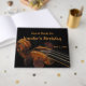 Personalize ou remova facilmente o texto deste incrível livro convidado de festa de aniversário que apresenta um velho e elegante pergaminho de violino.