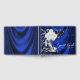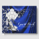 Woamsn royal blue e prata festa de aniversário convidado com calçados de salto alto, pérolas e vidro de champanhe prateado com brilho brilhante em fundo azul-real de satin. Este elegante livro de hóspedes azul e festa de aniversário prateada é facilmente personalizado para o seu evento simplesmente adicionando os seus detalhes no estilo de letra da sua escolha. Este é um design impresso sem brilho real, cetim, etc.