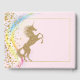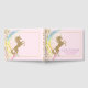 Livro convidado da festa de aniversário Unicórn com um bonito unicórnio dourado brilhante e corações num fundo de arco-íris cor-de-rosa. Este lindo livro convidado unicórnio é facilmente personalizado para o seu evento simplesmente adicionando o texto de sua escolha no estilo de fonte que você prefere. Você também pode mudar a cor de fundo neste adorável livro convidado de festa de aniversário unicórn. Este é um design impresso sem brilho real.