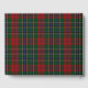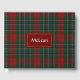 Colorido livro de convidados, feito com o padrão clássico de xadrez tartan MacLean, verde, azul, vermelho, amarelo, preto e branco. Uma área de texto de tom vermelho e dourado, na frente do livro, tem texto personalizado branco pronto para personalizar.