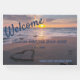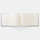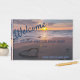 Uma praia do céu com um coração desenhado na areia molhada leva a um glorioso pôr do sol sobre o oceano neste livro convidado para sua casa de praia, cama e café da manhã, propriedades alugadas, compro ou restaurante. As fontes contrastantes estão em um azul profundo, mas podem ser mudadas para se adequarem ao seu próprio humor de praia. "Bem-vindo" está no script, e o restante do texto está em uma fonte nítida e fácil de ler. As informações do marcador de posição dizem "XXXXXX/Beach House" para lhe dar uma área para dar o nome da sua casa, se ela tiver uma, ou estabelecimento. Você também tem uma área para "cidade, estado" e "Por favor assine nosso livro de hóspedes." A coluna simplesmente tem "Beach House Guest Book" (e data inicial, se desejado), mas pode ser editada para o que você preferir. Aqui está uma maneira de cumprimentar todos os seus convidados com calor e beleza enquanto você grava suas visitas em um volume de manutenção.