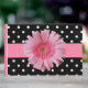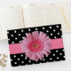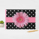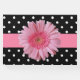 Bonito livro de hóspedes do casamento feito num branco branco branco sobre o padrão de bolinhas preta. Uma banda cor-de-rosa atravessa o meio do livro convidado com gráficos de um grande Gerber Daisy rosa, na frente. Personalize o texto, no verso do livro, para atender às suas necessidades. Os produtos de casamento correspondentes estão disponíveis.
