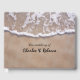 O livro de hóspedes do na moda Beach com uma fotografia de água a lavar numa praia arenosa. Personalize os campos de texto para seu dia especial. Os produtos de casamento correspondentes estão disponíveis.