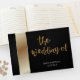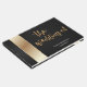 Caligrafia elegante, livro de hóspedes preto e ouro. Pode ser personalizado.