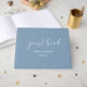 Livro de convidados de casamento em azul empoeirado. Personalize com seu próprio nome, data e foto