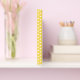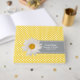 Bonito livro de hóspedes amarelo com um pequeno padrão de bolinhas branca. Uma fita de cinza, na frente do livro, tem textos brancos e gráficos personalizados de uma margarida amarela e branca. Personalize os campos de texto, para seu dia especial.