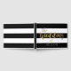 Livro de hóspedes em faixa na moda negra e branca com tipografia de efeito folha de ouro.