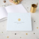 Este manual de casamento simples, minimalista e moderno apresenta um fundo azul pálido com um monograma de ouro falso. A coluna apresenta fundo azul empoeirado. Altere a cor de fundo e personalize para suas necessidades. Você pode encontrar produtos correspondentes na minha loja.