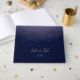 Guestbook com tema de tubarão em azul e cinza. O texto pode ser personalizado. Isto é parte de um jogo de casamento de tubarões.