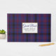 Livro colorido de convidados de casamento feito no padrão clássico de xadrez de Dundonald tartan, clã escocês preto, amarelo e vermelho, azul de regência. Uma área de texto decorativo, na frente do livro, tem texto personalizado pronto para personalizar. Os produtos de casamento correspondentes estão disponíveis.