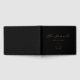 Este elegante livro de hóspedes preto apresenta roteiros modernos e fontes serif com um gráfico foliar em ouro. Este livro de convidados personalizado pode ser personalizado para incluir nomes, uma data especial, a sua preferência por cores e muito mais.