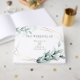 Livro de Convidados de Casamento | Botânica Verde de Jade Cinzento - variações do Verde de Jade Cinzenta - folhas verdes de jade mudada rodeadas ao redor do quadro de ouro do estilo terrário. Fresco e simples, mas deliciosamente elegante. Esta é parte de uma coleção de suite de casamento coordenada por design, projetada pelo BarefootBride™. Possui um estilo de texto clássico simples (que pode ser alterado se você quiser clicar em Personalizar este modelo e, em seguida, na lista suspensa, clique em Clicar para personalizar ainda mais - aqui você pode alterar a fonte e as cores do texto)