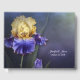 Belo livro de convidados de casamento feito em um fundo com cor de água roxa, azul e verde, com gráficos impressionantes de uma flor de íris roxa e amarela. Personalize os campos de texto branco, na frente, para atender às suas necessidades. Os produtos de casamento Ultra Violet Iris estão disponíveis.