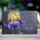 Belo livro de convidados de casamento feito em um fundo com cor de água roxa, azul e verde, com gráficos impressionantes de uma flor de íris roxa e amarela. Personalize os campos de texto branco, na frente, para atender às suas necessidades. Os produtos de casamento Ultra Violet Iris estão disponíveis.