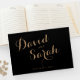 Livro de convidados personalizado com Rico Script Font Um lindo livro de convidados de casamento completamente personalizado para os seus detalhes. Este design clássico é uma opção de excelente para qualquer recepção de casamento.