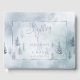 Livro de Convidados de Casamento | Silver Blue Winter Wonderland - design original por ©WhimsicalArtwork™ - Uma cena de inverno de cor azul Prateada com pinheiros evergreen pintados manualmente e neve suficiente nos ramos para lembrá-lo de um dia de inverno estaladiço na floresta - cercar isto com uma camada branca translúcida em um quadro azul e prateado - fazer o topo com uma caligrafia manual em cinzas e você o casamento no inverno, chá de fraldas ou pacote de convites de aniversário perfeito. Uma combinação de caligrafia de script combinada com um layout de texto minimalista e contemporâneo faz dele um pacote de casamento de estilo de tendência. Esta é parte de uma coleção de artigos de papelaria de casamento com acessórios de casamento correspondentes pela BarefootBride™.