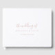 Este livro de hóspedes minimalista de ouro rosa é perfeito para um casamento moderno. O design simples e elegante apresenta a tipografia de script clássico e de rico em rosa-ouro. Personalize o cobrir frontal e a coluna para incluir os nomes da noiva e do noivo e a data do casamento.