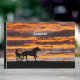 Cavalo De Trote Normal No Sunset, Livro De Convidados. Arte Digital. Silhueta de cavalo padrão e corrida de motorista no pôr do sol. Totalmente personalizável; faça isso seu. Edite o texto ao seu gosto.