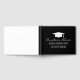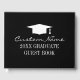 Livro de convidados de formatura de segundo grau personalizado. Modelo de design branco e preto elegante com o logotipo de chapéu de tassel acadêmico. Deixem estudantes de classe e convidados escreverem seus comentários. Modelo de tipografia de script clássico. As cores podem ser alteradas.
