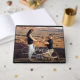Convidados podem assinar seus melhores desejos neste elegante livro de hóspedes com sua foto de noivado favorita na frente, juntamente com seus detalhes em letras quicas na frente e na coluna.