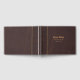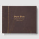 Livro de convidados marrom feito em um olhar antigo de couro com sotaques de ouro. Personalize o texto personalizado para seu dia especial.