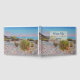 Personalize este Catálogo de Convidados da Férias Beach House com o nome do aluguel. Perfeito para a cabana, lago de cabana ou aluguel de praia ao lado do oceano. Tem uma bela pintura de dunas de areia. Fácil de personalizar com suas próprias informações. Design pelo Emporium de Jenn.