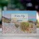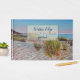 Personalize este Catálogo de Convidados da Férias Beach House com o nome do aluguel. Perfeito para a cabana, lago de cabana ou aluguel de praia ao lado do oceano. Tem uma bela pintura de dunas de areia. Fácil de personalizar com suas próprias informações. Design pelo Emporium de Jenn.