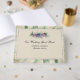 Um livro de hóspedes floral de cor aquosa com rosas cor-de-rosa e azul. Este livro de hóspedes faz parte de um conjunto completo.