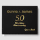 Tipografia Elegante Black and Dourada, 50º aniversário de casamento, festa de Ouro, livro de convidados