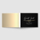 Capture memórias queridas com este elegante livro de convidados de casamento preto e ouro. Apresentando um sofisticado fundo negro, coração romântico de corda de ouro e caligrafia moderna, este livro de hóspedes proporciona um lugar bonito para os seus entes queridos deixarem mensagens sinceras. Personalize-o com os seus nomes e a data do casamento, por um tesouro para sempre.