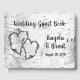 Livro de hóspedes do casamento russo com design de latido de de pássaros brancos. Dois corações são entalados na árvore na design, na frente, com lugares para nomes e data de casamento. Perfeito para um casamento no celeiro, ou celebração ao ar livre.