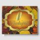 Um cobertor de folhas coloridas do outono em vermelhos vibrantes, laranjas, dourados e castanhos fornece a gota de trás para esta encantadora design de Ação de Graças. As folhas são revestidas por uma "Ação de Graças Feliz" em que se chama "ouro" e fazer de ouro profundo gradiente, esta é a escolha perfeita para manter as memórias de Ação de Graças. Entradas de familiares e amigos ou convidados honrados resultam em uma adorável manutenção de férias.