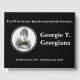 Este simples guia de simpatia funerária/memorial apresenta a mensagem "Você estará em nossos corações e mentes para sempre", e o nome personalizado e as datas de nascimento/morte do indivíduo que passou. Ele também apresenta uma foto personalizada. Poderia ser usado para registrar desejos simpáticos para os familiares e amigos de alguém que passou recentemente.