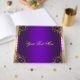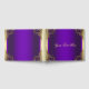 Livro de hóspedes roxo e dourado com lindas espirais de ouro sobre fundo roxo profundo. Você pode personalizar facilmente este elegante livro de hóspedes roxo e ouro para o seu evento simplesmente adicionando o texto de sua escolha no estilo de fonte que você prefere.