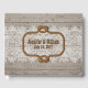 Livro de hóspedes de chic ocidental feito em um olhar de ardósia. Gráficos de rendas brancas se estendem através do meio do livro, com um círculo de corda com nós, na frente, para o seu texto. Personalize os campos de texto marrom para seu dia especial.