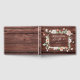 Este livro de hóspedes floral, feminino e bonito, apresenta cor de pêssego e flores brancas, com elementos verdes e de ouro rosa, sobre um fundo de madeira rústica. Isso seria perfeito para um casamento ao ar livre no verão ou no outono. Personalize o cobrir frontal com os nomes da noiva e do noivo.