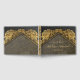 Este livro de hóspedes personalizável apresenta colônias de papel dourado em uma área de fundo dourada de gradiente preto e texto preto. Basta adicionar seus detalhes para lhe dar um sentimento e voila personalizados!