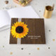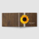 Livro de hóspedes de chic russo feito em uma madeira escura manchada. Gráficos de fita de rendas brancas e um grande girassol amarelo, decoram a frente esquerda do livro. Personalize os campos de texto em branco para seu dia especial.